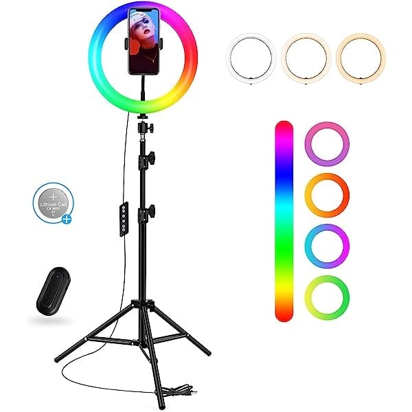 ■افضل رينج لايت بأفضل شدة اضاءة قوية تمنحك أفضل صور و فيدوهات احترافية .تتميز بمرونتها وقابليتها للتعديل حسب الطول المطلوب .تمكنك من التحكم في الشدة و السطوع و تغير الإضاءة بشكل سهل عن طريق الريموت المدمج .توزع الإضاءة بشكل متساوي على جميع أجزاء الصورة لتصبح أكثر احترافية و جمالا .انسب رينج لايت يمكن تستخدميها اذا كنت خبيرة مكياج و تريدين الحصول على صور احترافية تبرز جمال مكياجك .تتميز جميع اجزاء الرينج لايت بمتانتها وقوتها في التحمل لتضمن لك الإستخدام لعمر طويل بنفس الكفأه .وجود مثبت الجوال يساعدك كثيرا في التحكم بشكل أكبر في الحصول على فيديوهات مميزة .■اضاءة رينق لايت LED للبثوث■اضاءة دائريةتتوفر بألوان وأحجام مختلفهلون/ أبيض/ أصفر /شمسي/3ألوانلون/ أبيض / أصفر / شمسي/ أزرق /أخضر/ أحمر / بنفسجي/النوع و الحجم واللواناضاءة رينق لايت LED بث 12سم 3ألواناضاءةرينق لايت LED بث 20 سم 3للواناضاءةرينق لايت LED بث 30سم 7ألواناضاءةرينق لايت LED بث 36 سم 7 ألوان